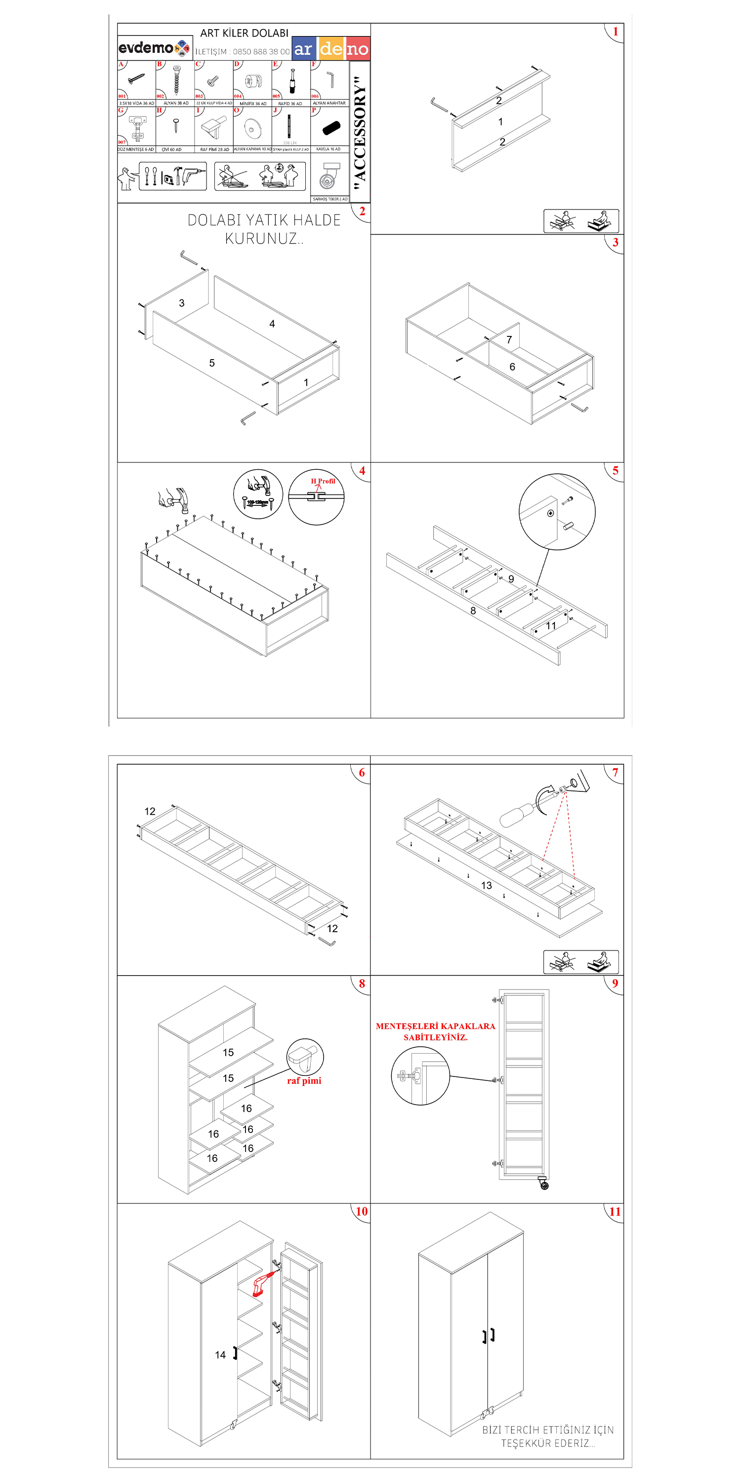 Ürünlerimizin bağlantı şekli Alyan vida ve minifix ile yapılmaktadır.