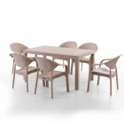 Bamboo 6 Kişilik Rattan Masa Sandalye Takımı Cappuccino