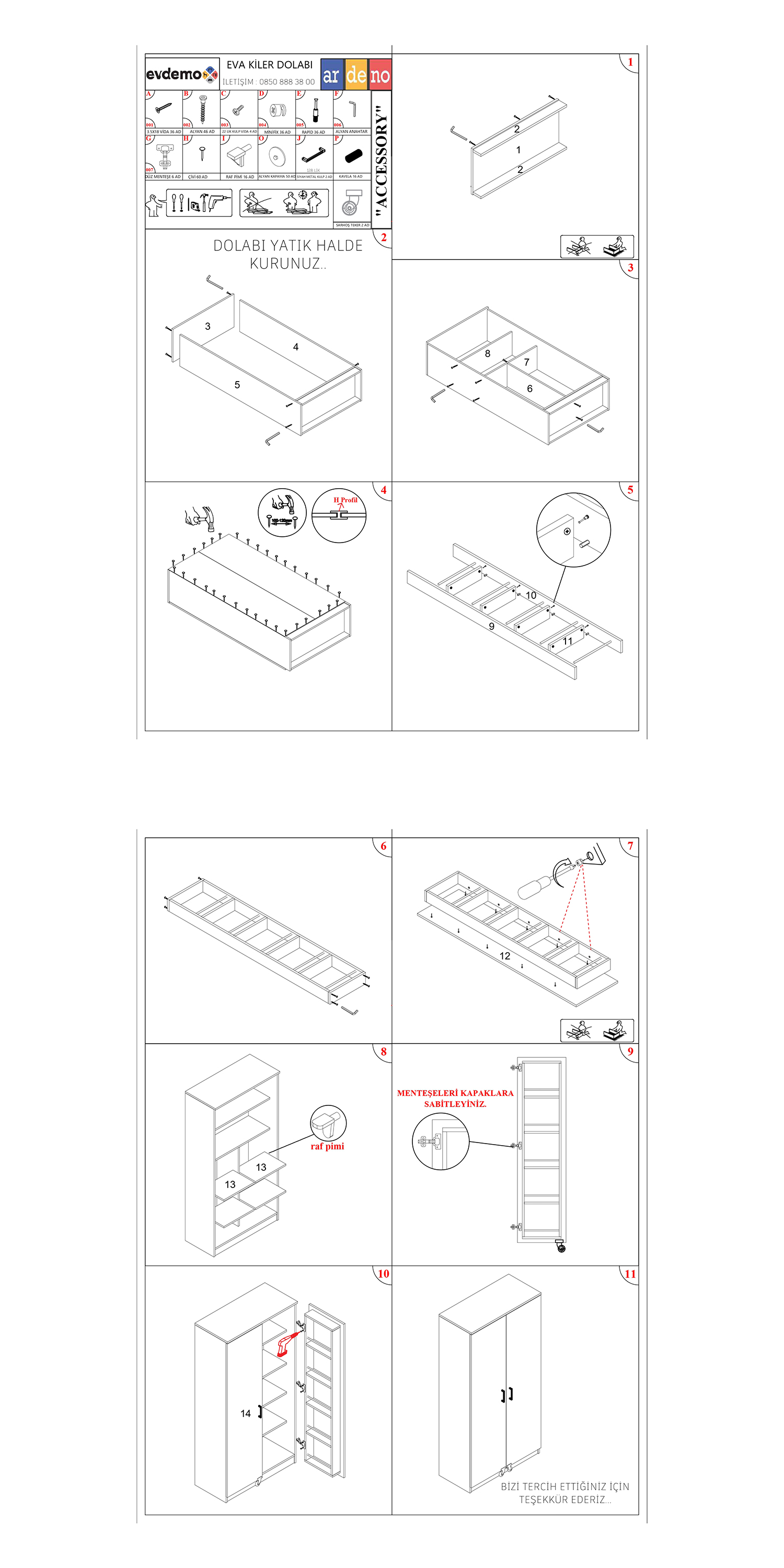 Ürünlerimizin bağlantı şekli Alyan vida ve minifix ile yapılmaktadır.