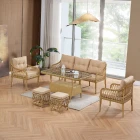 Joy Rattan Puflu Bahçe Balkon Takımı 3+1+1+Camlı Masa Cappuccino