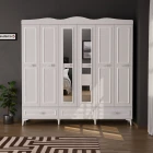 Luna 6 Kapaklı 3 Çekmeceli Aynalı Gardırop Beyaz